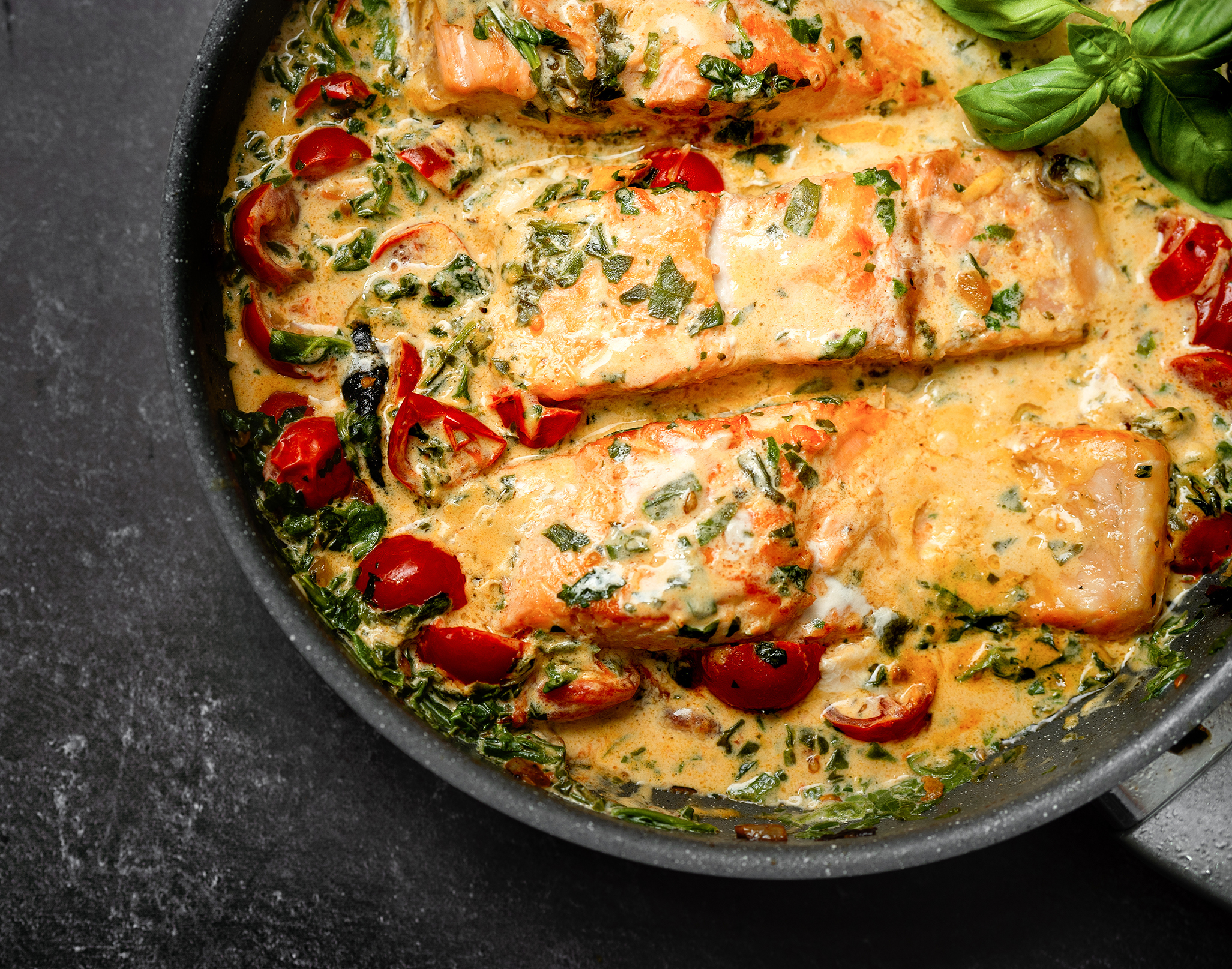 This recipe provides key vitamins and minerals, including Vitamin D and B12 from salmon for bone, nerve, and immune health. Calcium from Parmesan and dairy. Iron, magnesium, and folate from spinach. And antioxidants from garlic and sun-dried tomatoes.